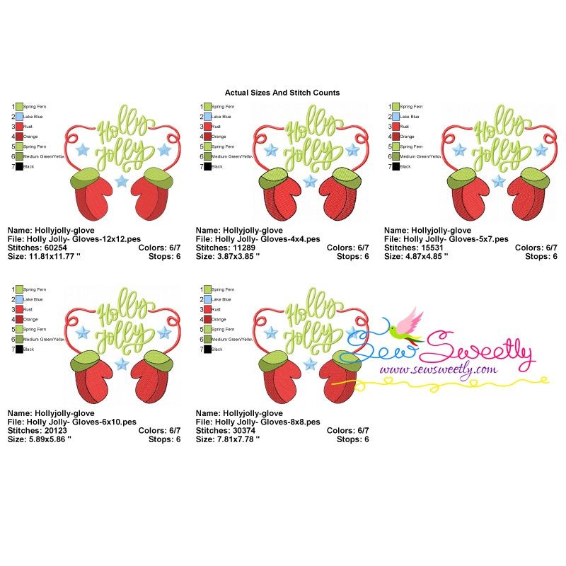 Holly Jolly Gloves Christmas Lettering Machine Embroidery Design Pattern For Christmas.