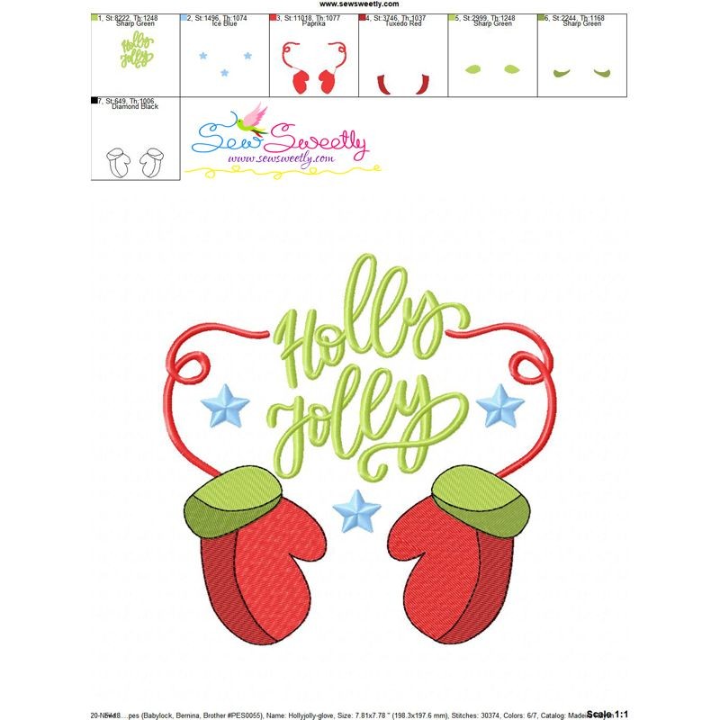 Holly Jolly Gloves Christmas Lettering Embroidery Design Pattern