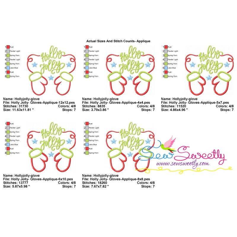 Holly Jolly Gloves Christmas Lettering Applique Design Pattern-3