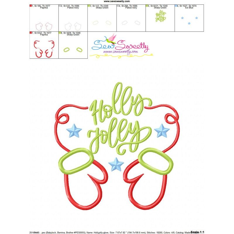 Holly Jolly Gloves Christmas Lettering Applique Design Pattern-1