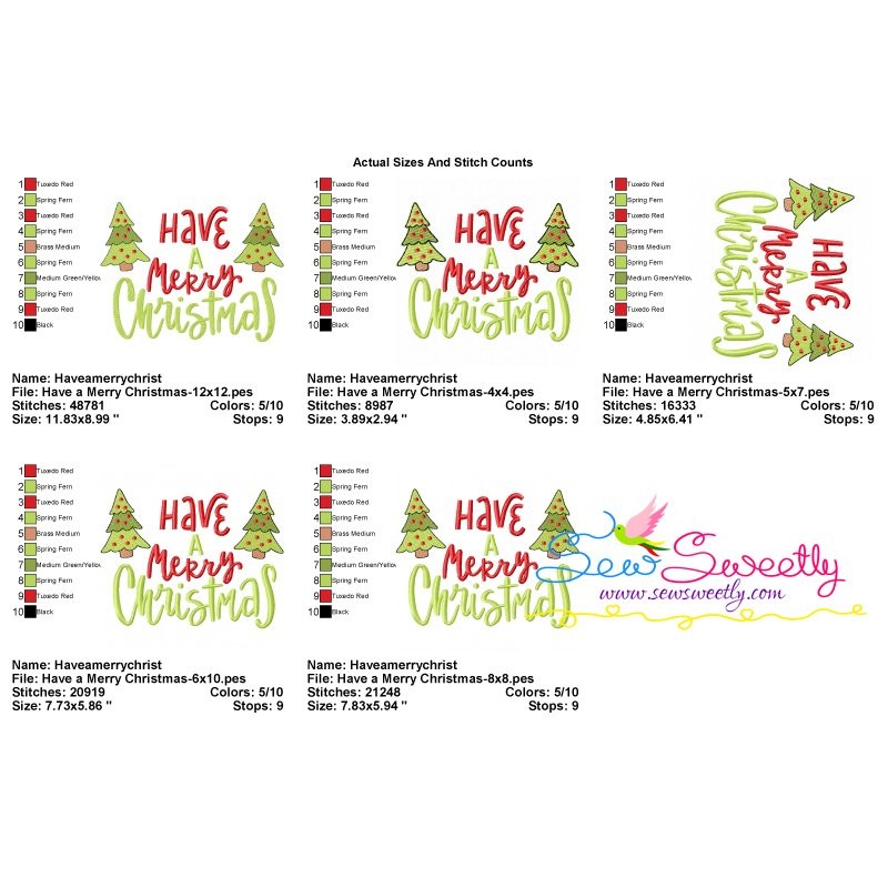 Have a Merry Christmas Lettering Embroidery Design Pattern