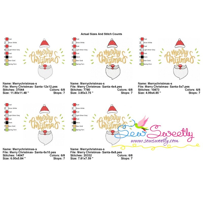Merry Christmas Santa Lettering Machine Embroidery Design Pattern For Christmas.