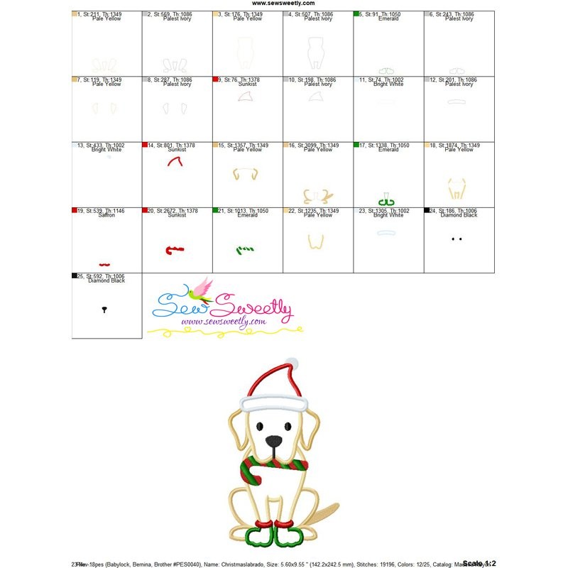 Christmas Labrador Dog Machine Embroidery Applique Design Pattern For Christmas.