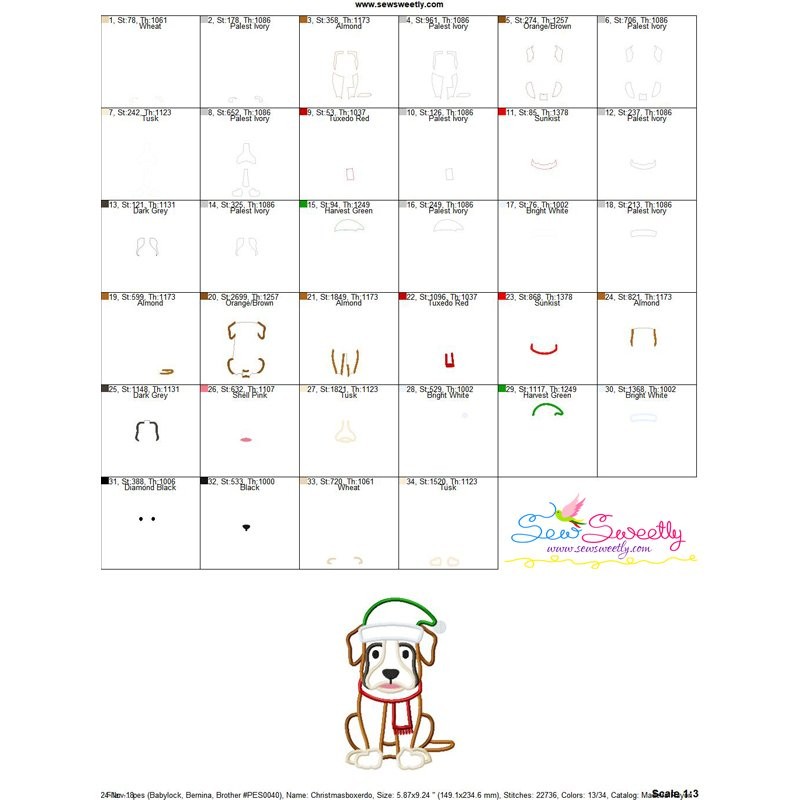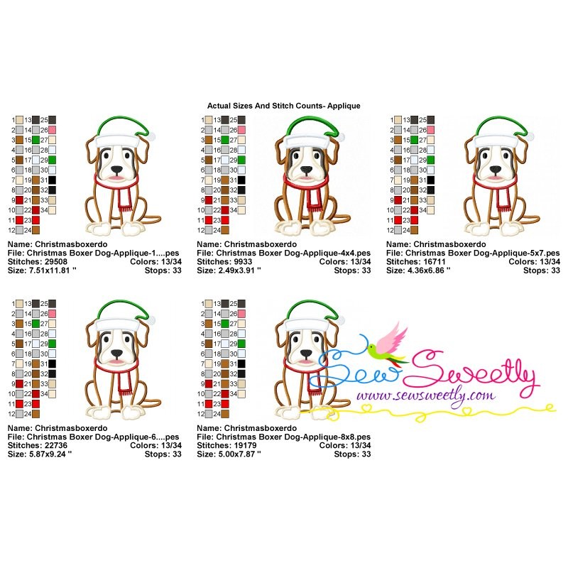 Christmas Boxer Dog Machine Embroidery Applique Design Pattern For Christmas.