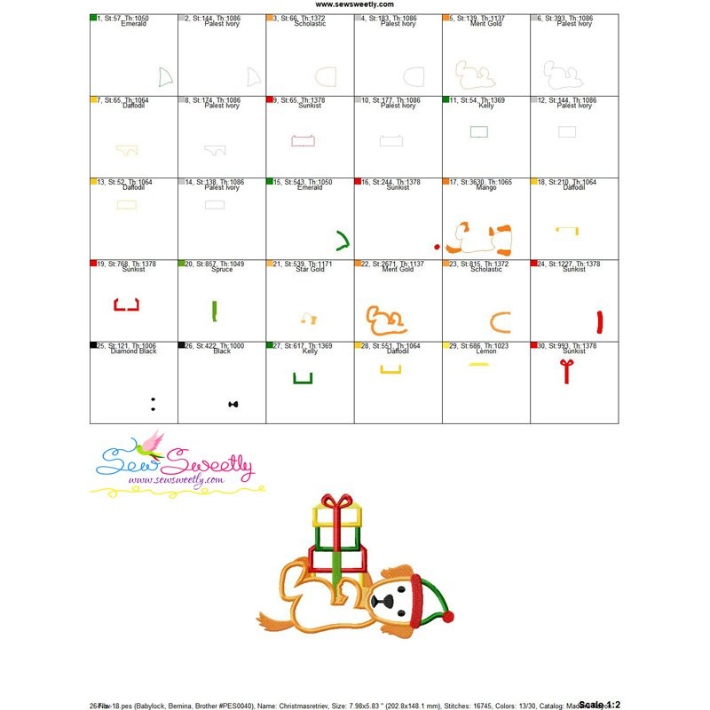 Christmas Retriever Dog Gifts Machine Embroidery Applique Design Pattern For Christmas.