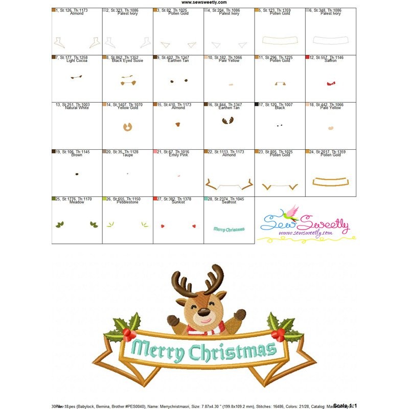 Merry Christmas Ribbon- Reindeer Lettering Applique Design Pattern-1