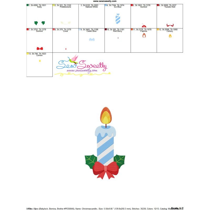 Christmas Candle-3 Machine Embroidery Design Pattern For Christmas.