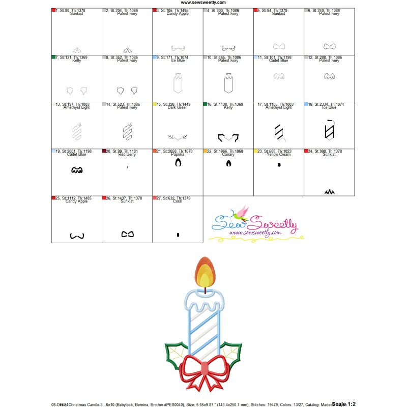 Christmas Candle-3 Machine Embroidery Applique Design Pattern For Christmas.