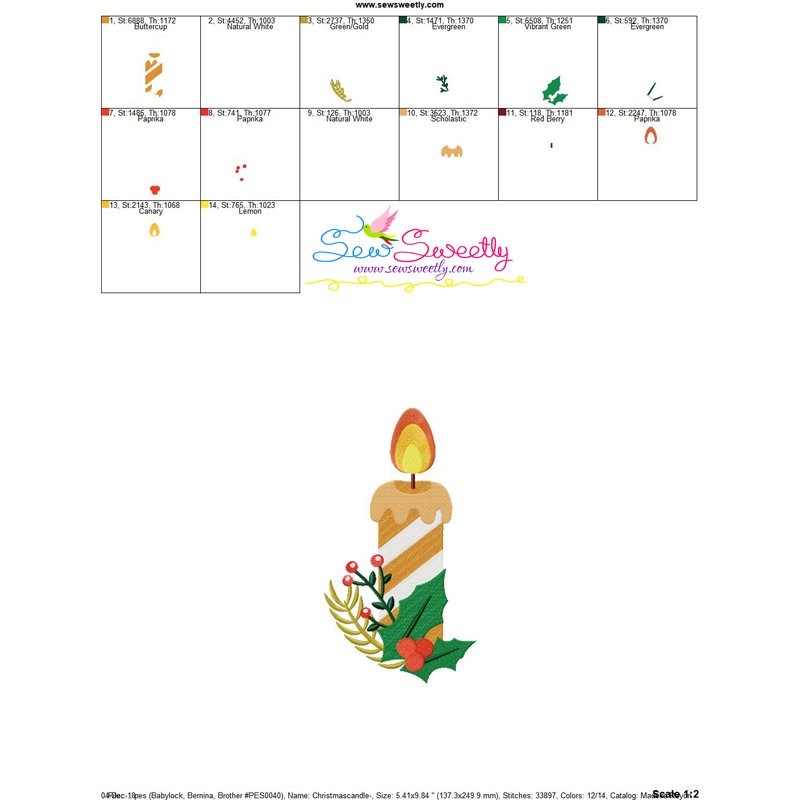 Christmas Candle-2 Machine Embroidery Design Pattern For Christmas.