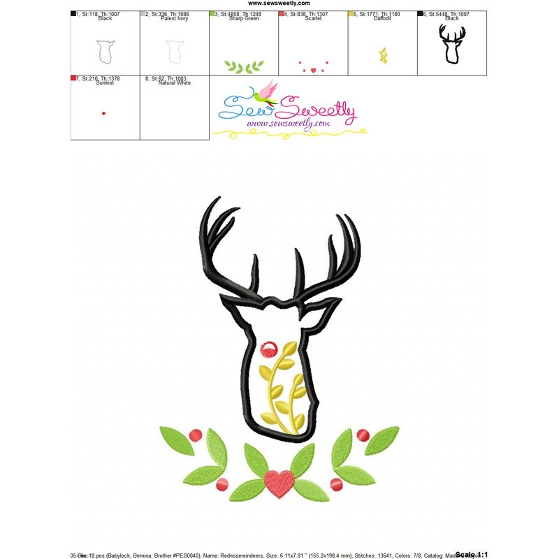 Red Nose Reindeer Silhouette-6 Applique Design Pattern-1