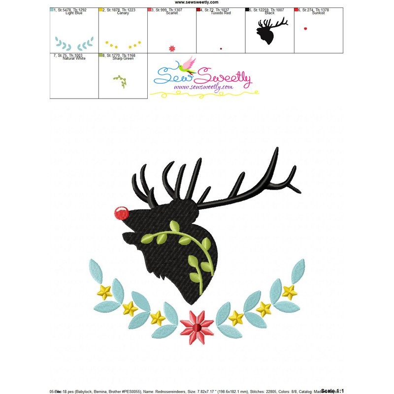 Red Nose Reindeer Silhouette-5 Embroidery Design Pattern-1
