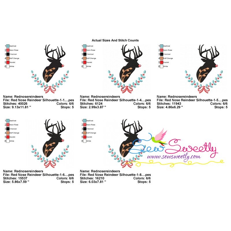 Red Nose Reindeer Silhouette-1 Embroidery Design Pattern-3