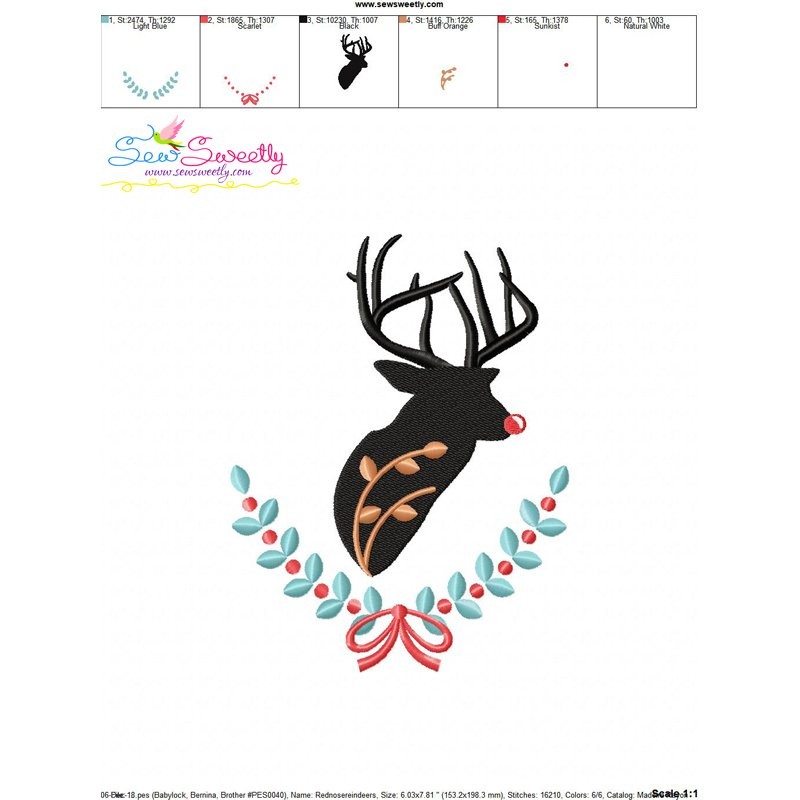 Red Nose Reindeer Silhouette-1 Embroidery Design Pattern-1