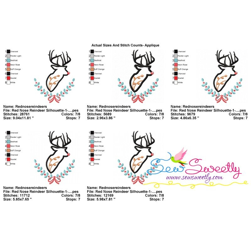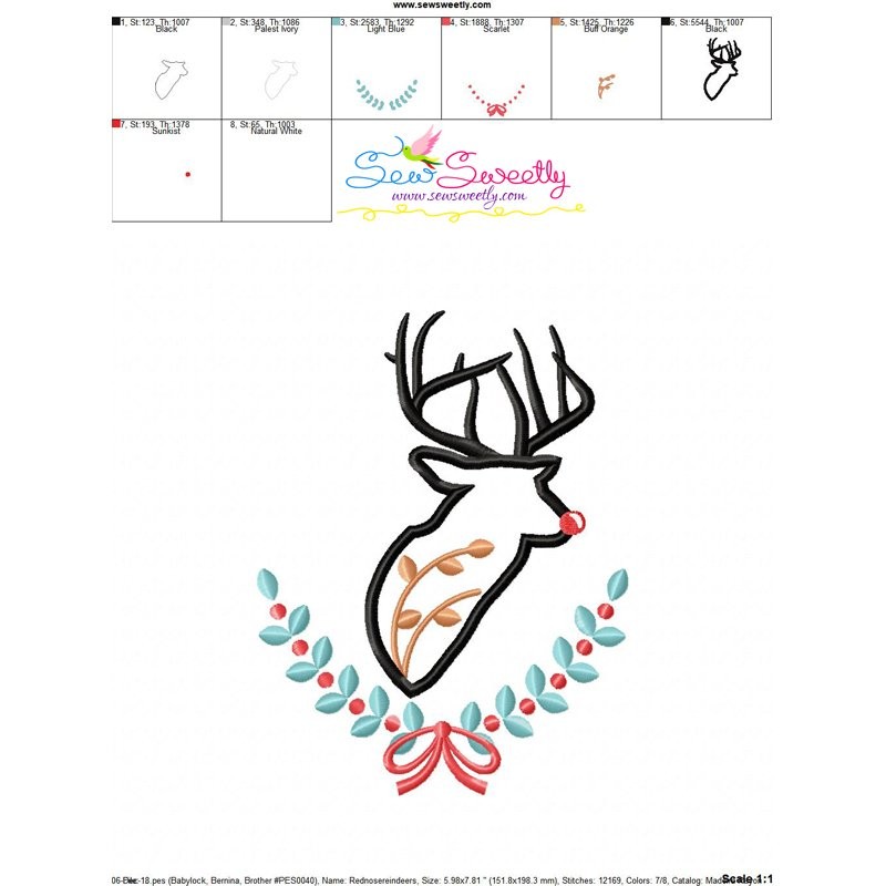 Red Nose Reindeer Silhouette-1 Applique Design Pattern-2