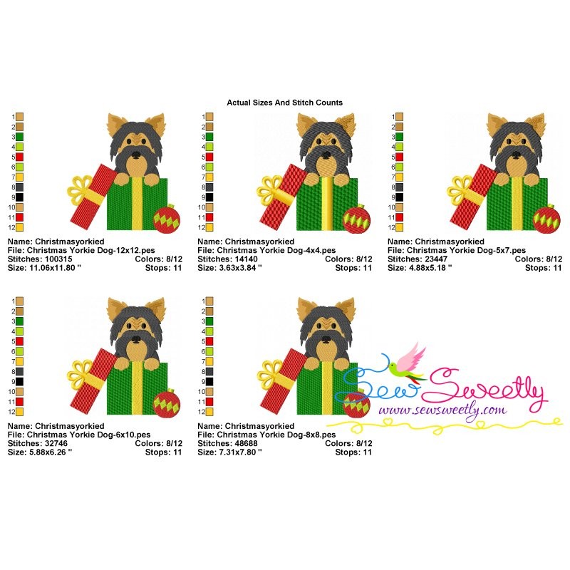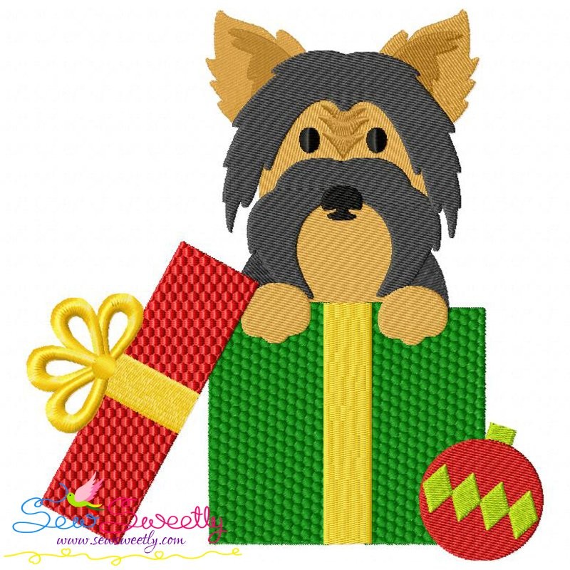 Christmas Yorkie Dog Machine Embroidery Design Pattern For Christmas.