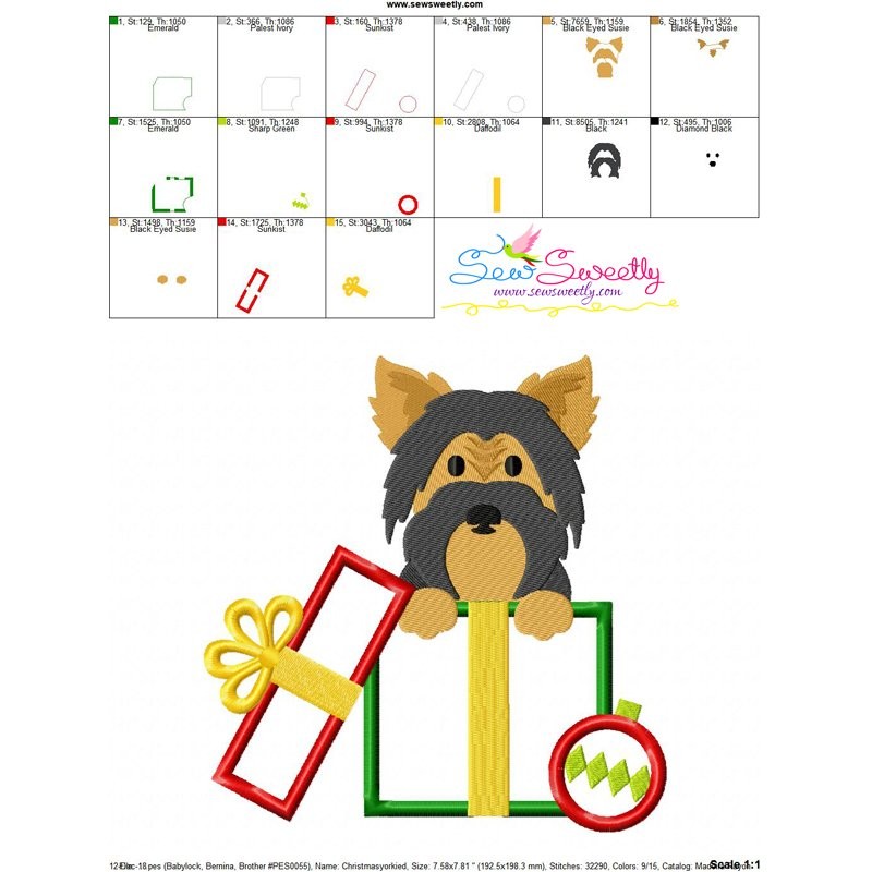 Christmas Yorkie Dog Machine Embroidery Applique Design Pattern For Christmas.