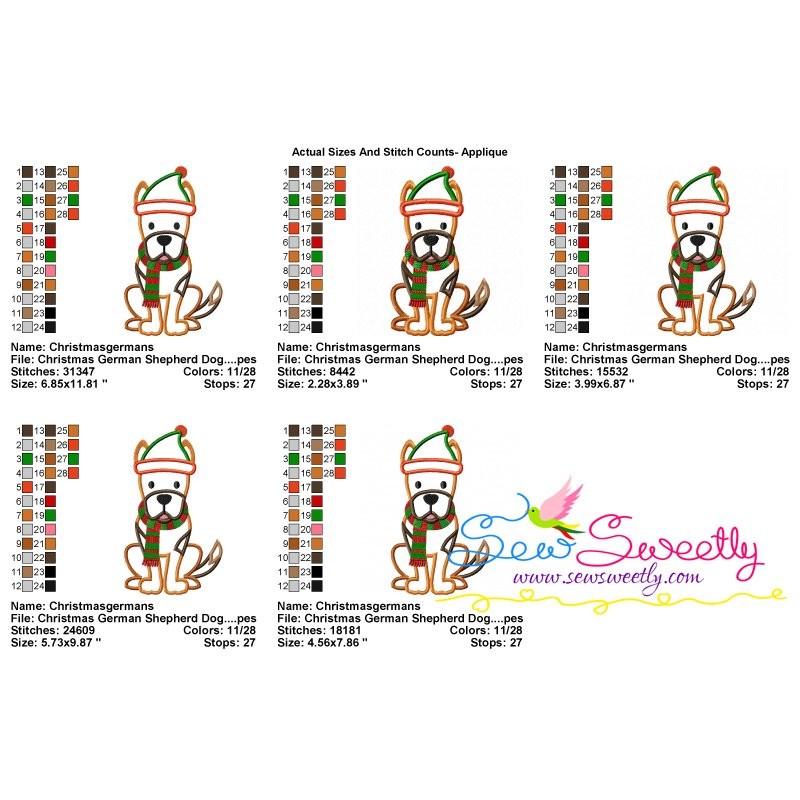 Christmas German Shepherd Dog Applique Embroidery Design Pattern For Christmas.