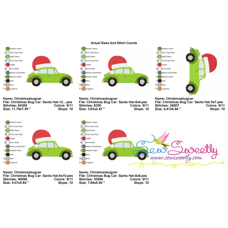 Christmas Bug Car- Santa Hat Machine Embroidery Design Pattern For Christmas.
