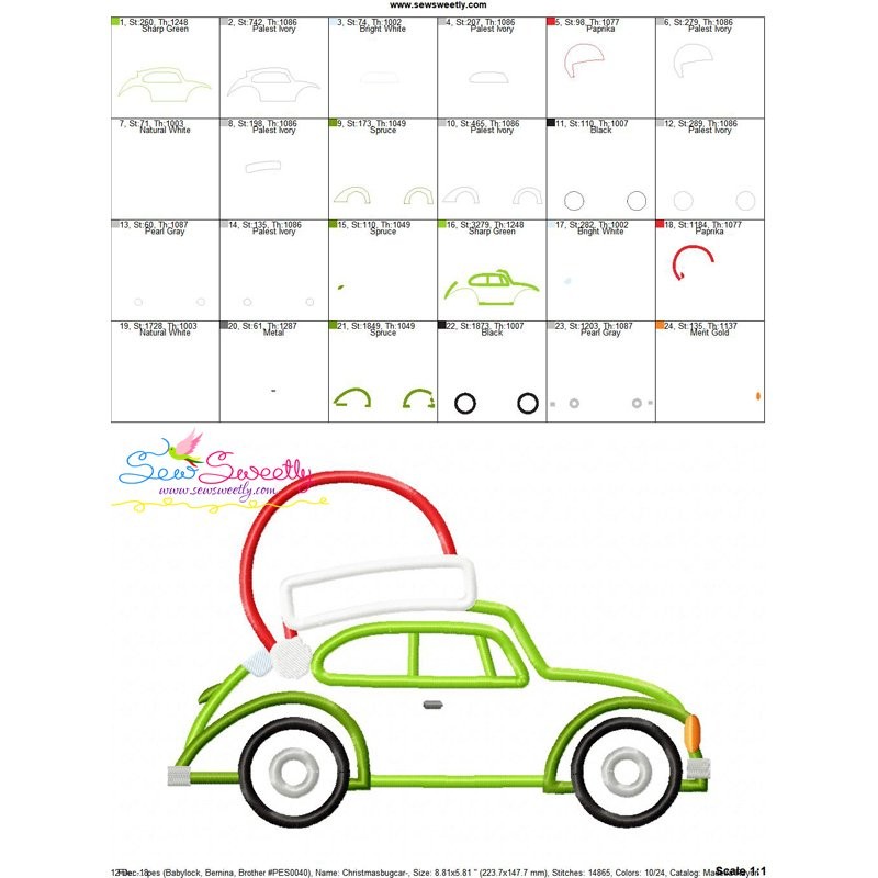 Christmas Bug Car Santa Hat Machine Embroidery Applique Design Pattern For Christmas.