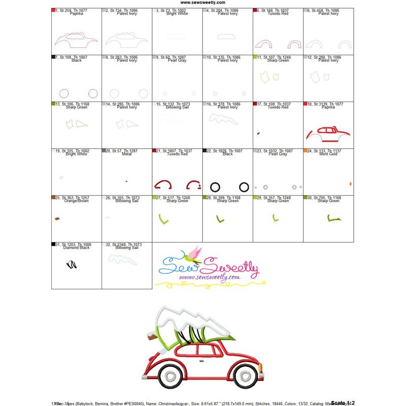 Christmas Bug Car With Tree Applique Embroidery Design Pattern For Christmas.
