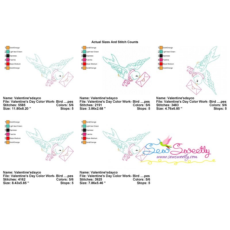 Valentine's Day Color Work- Bird Love Letter Machine Embroidery Design Pattern For Valentine's Day.