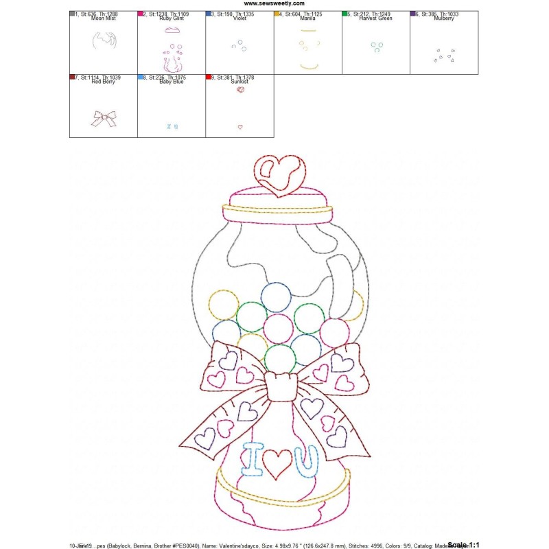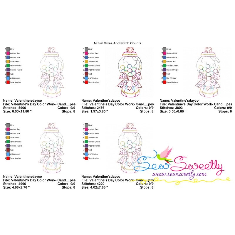 Valentine's Day Color Work- Candies Jar Machine Embroidery Design Pattern For Valentine's Day.