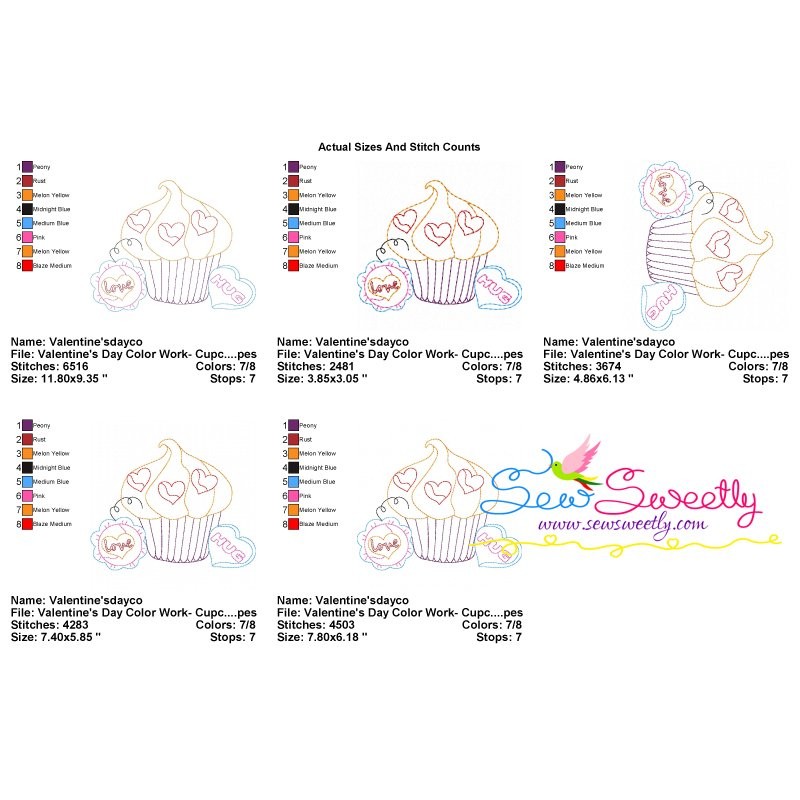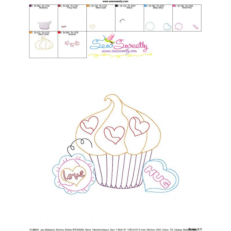 Valentine's Day Color Work- Cupcake-2 Machine Embroidery Design Pattern For Valentine's Day.