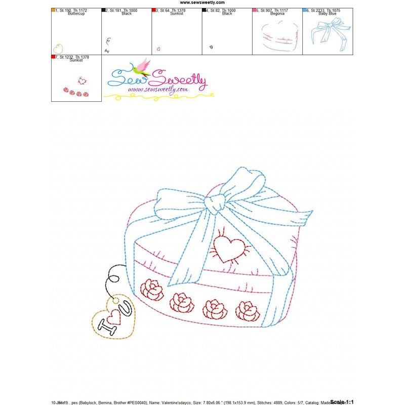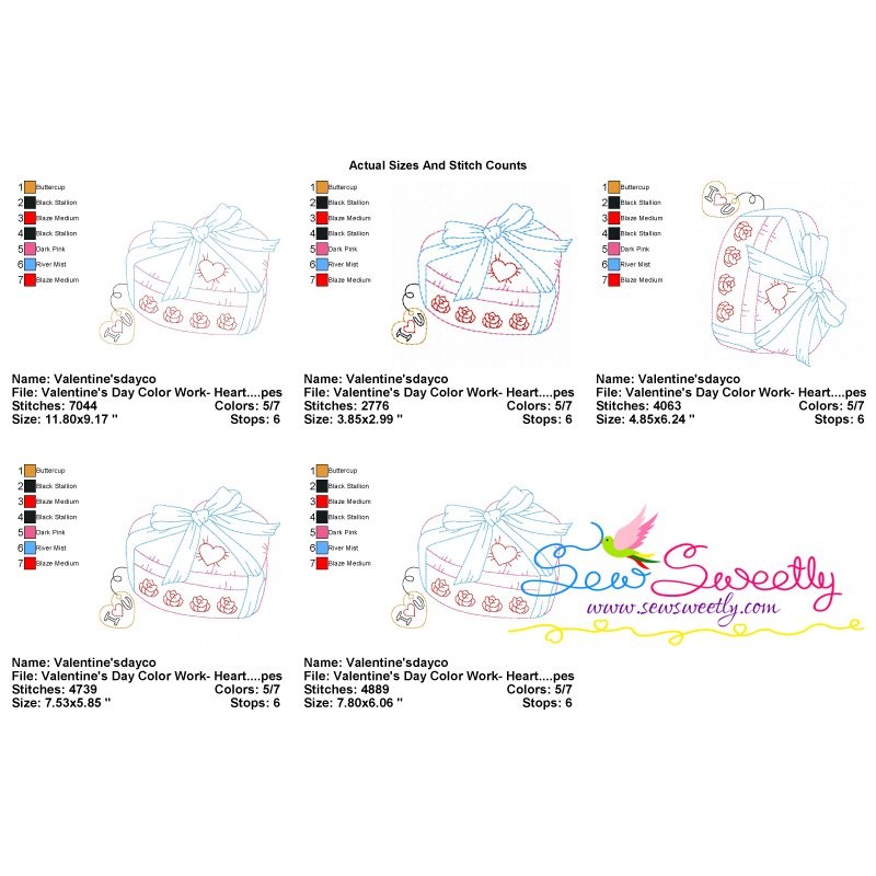 Valentine's Day Color Work- Heart Gift Machine Embroidery Design Pattern For Valentine's Day.