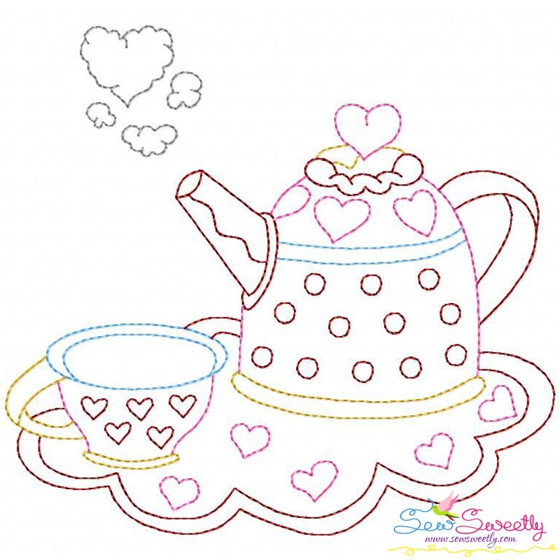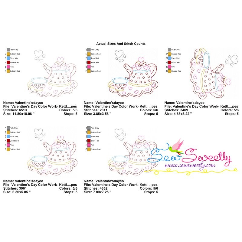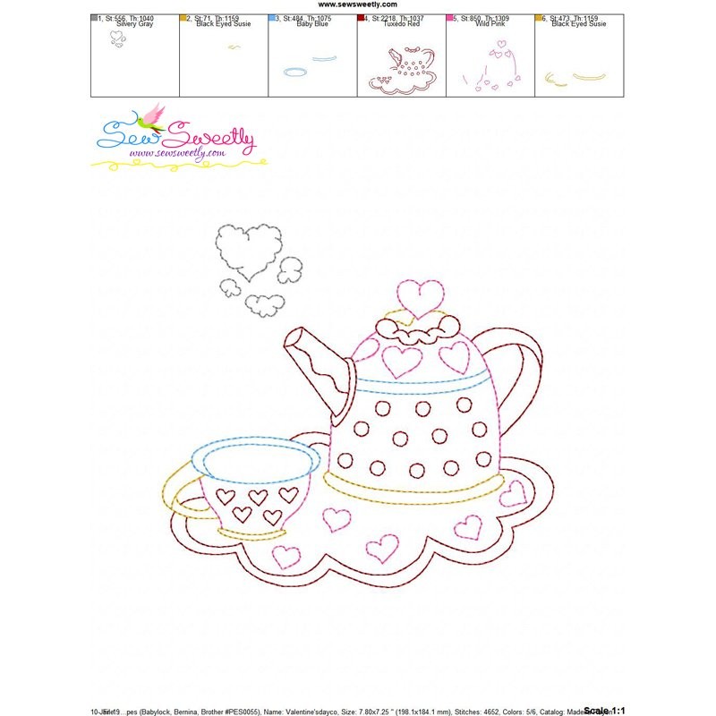Valentine's Day Color Work Kettle Cup Machine Embroidery Design Pattern For Valentine's Day.
