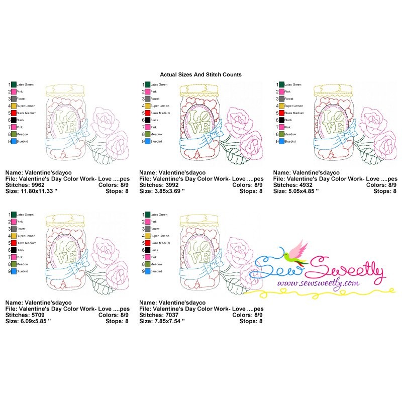 Valentine's Day Color Work- Love Candies Jar Machine Embroidery Design Pattern For Valentine's Day.