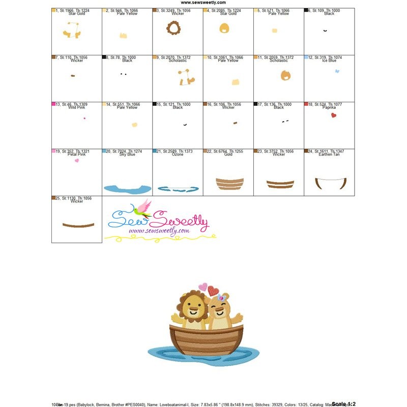 Love Boat Animal- Lions Machine Embroidery Design Pattern For Valentine's Day.