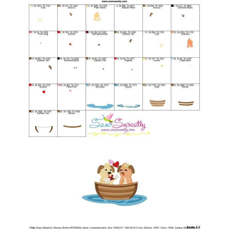 Love Boat Animal- Puppies Machine Embroidery Design Pattern For Valentine's Day.