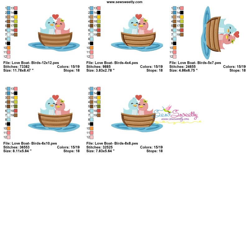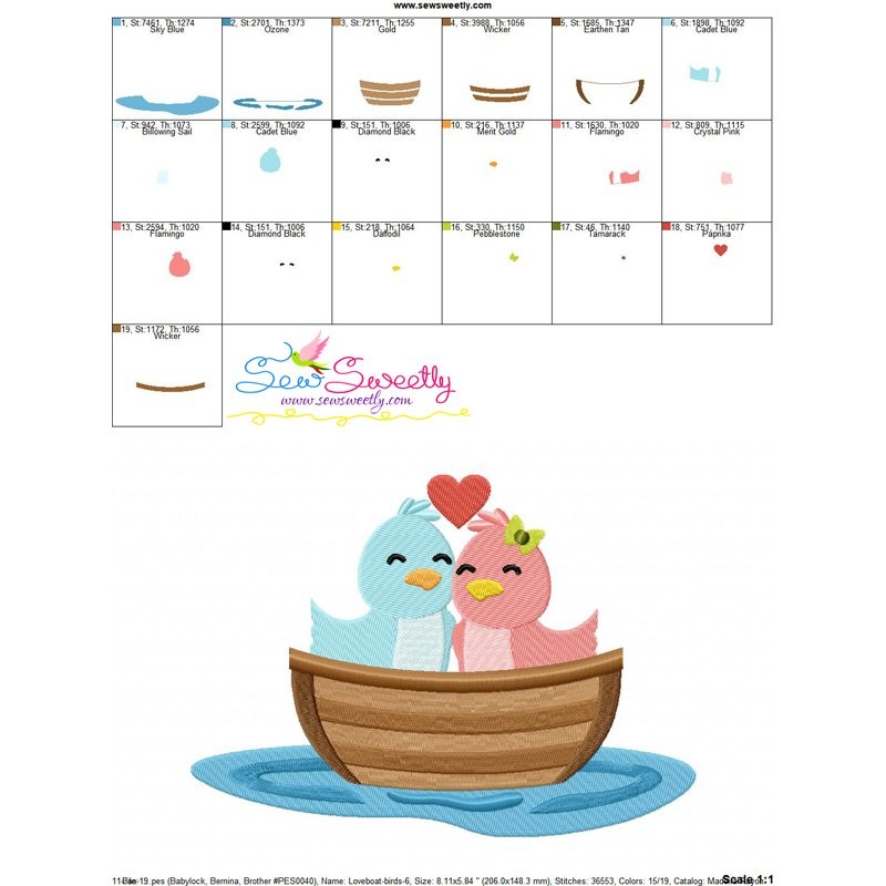 Love Birds Boat Machine Embroidery Design Pattern For Valentine's Day Embroidery Projects.