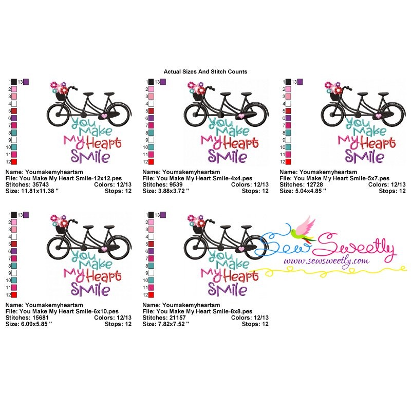 You Make My Heart Smile Bicycle Embroidery Design Pattern-3