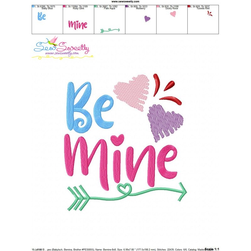 Be Mine Hearts Machine Embroidery Design Pattern For Valentine's Day.