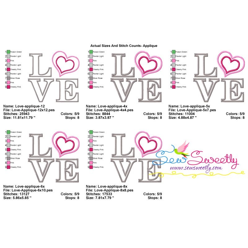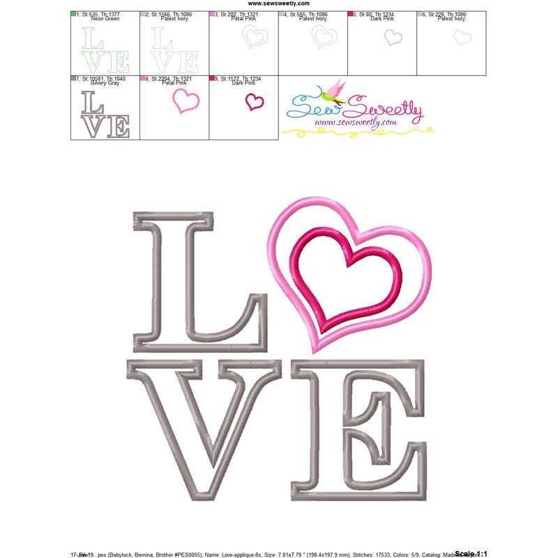 Love Heart Applique Lettering Embroidery Design Pattern-1