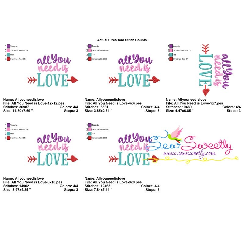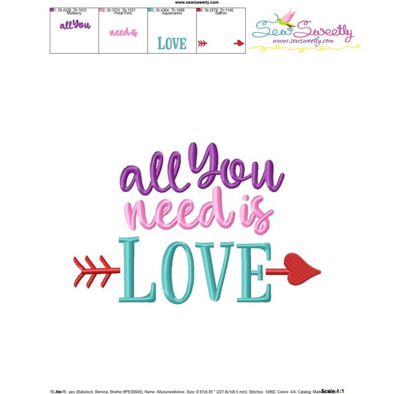All You Need is Love Machine Embroidery Design Pattern For Valentine's Day.