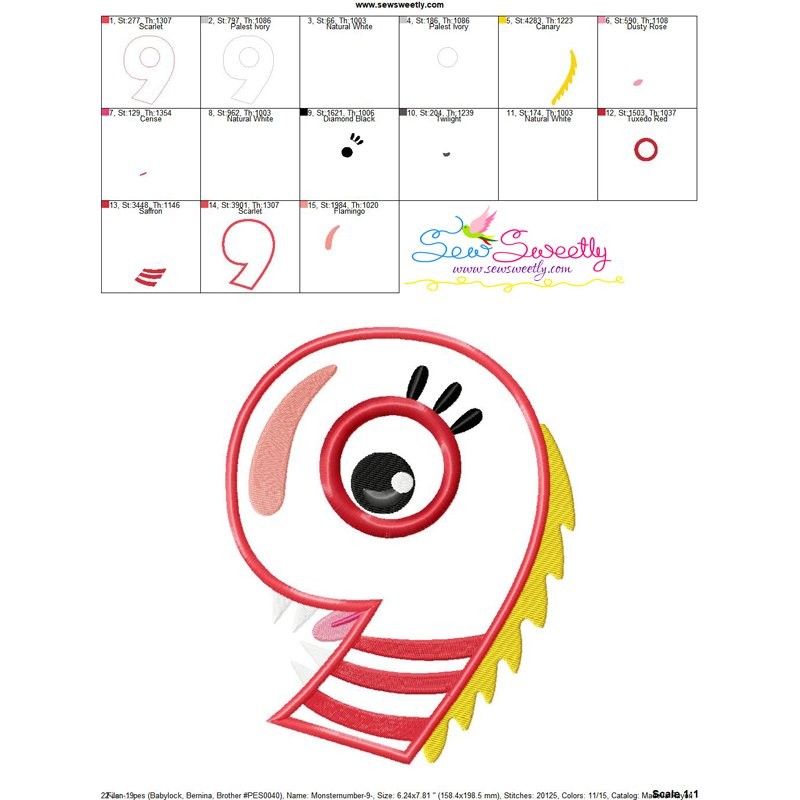 Monster Number-9 Machine Embroidery Applique Design Pattern.