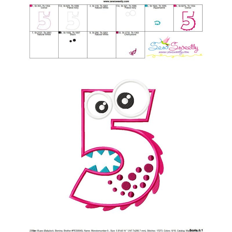 Monster Number-5 Machine Embroidery Applique Design Pattern.