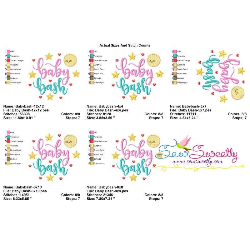 Baby Bash Machine Embroidery Design Pattern For Baby Shower.