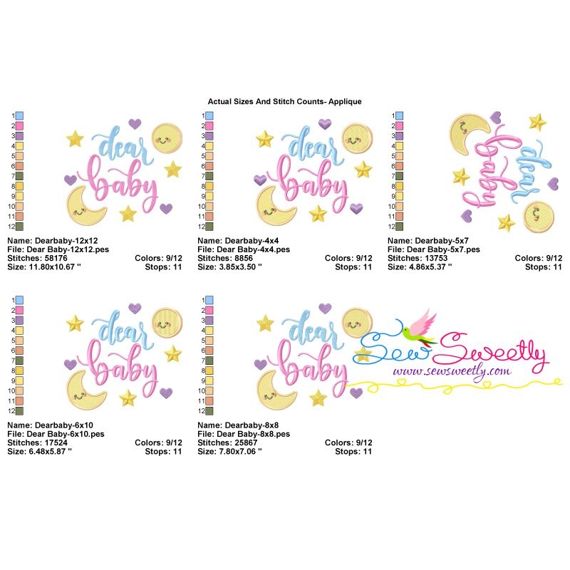 Dear Baby Machine Embroidery Design Pattern For Baby Shower Embroidery Projects.