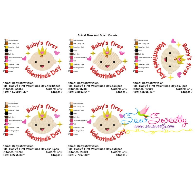 Baby's First Valentine's Day Machine Embroidery Design Pattern For Valentine's Day Embroidery Projects.
