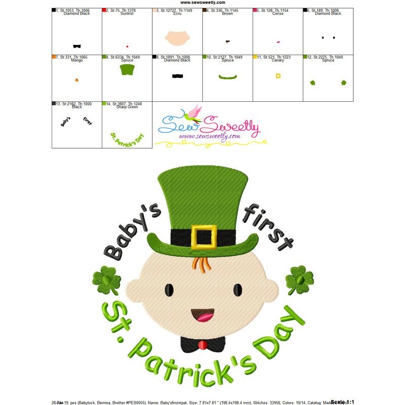 Baby's First St. Patrick's Day Machine Embroidery Design Pattern.