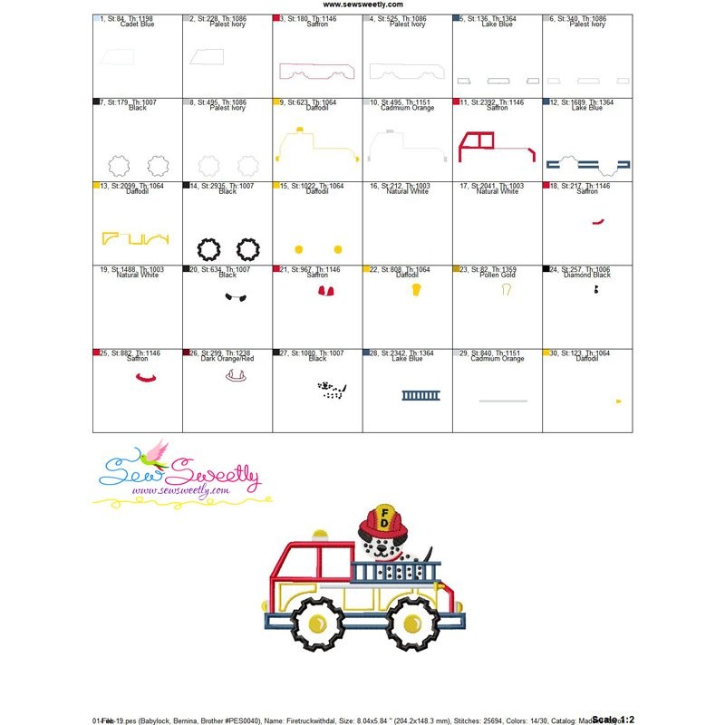 Fire Truck With Dalmatian Dog Applique Design Pattern-2