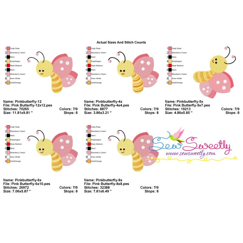 Pink Butterfly Machine Embroidery Design Pattern.