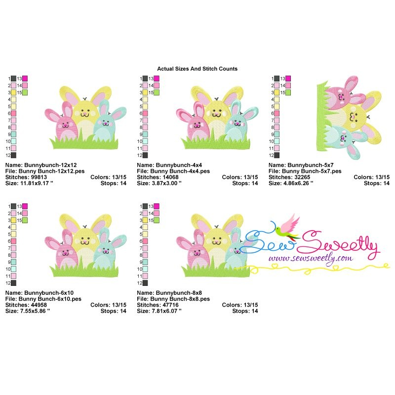 Bunny Bunch Machine Embroidery Design Pattern For Easter.