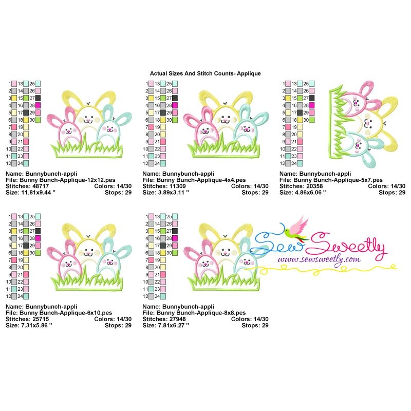 Bunny Bunch Machine Embroidery Applique Design Pattern For Easter.