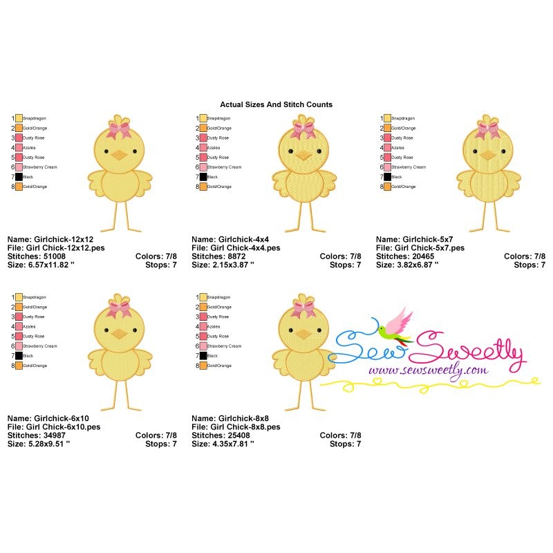 Easter Girl Chick Machine Embroidery Design Pattern For Easter.