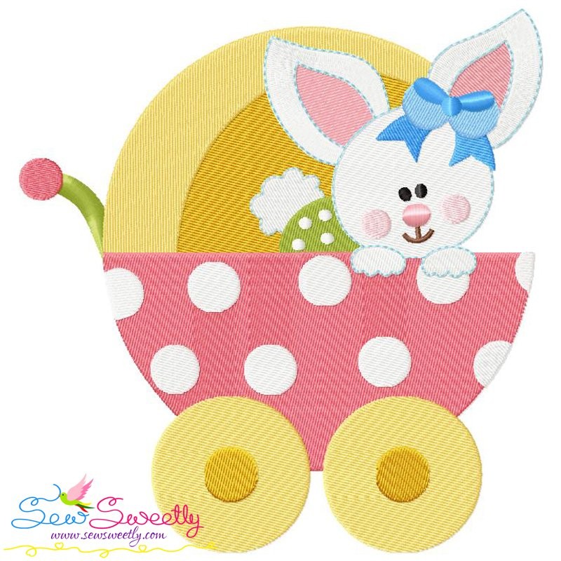 Baby Bunny Girl Stroller Machine Embroidery Design Pattern For Easter.
