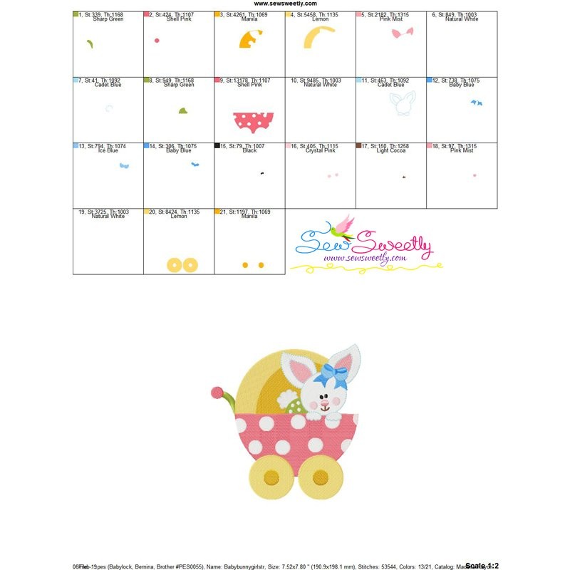 Baby Bunny Girl Stroller Embroidery Design Pattern